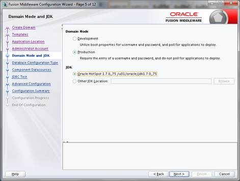 Select “Production” on Domain Mode and Choose the JDK appropriate and Click in Next button:
