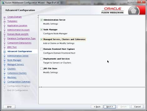 Select “Administration Server”, “Node Manager”, “Managed Servers, Clusters and Coherence” and Click in Next button: