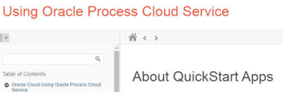 Choose a QuickStart App to quickly create an application and learn about Process Cloud Service. QuickStart Apps include all the implementation details needed to play and deploy them. Use these applications as a ready-to-use application to deploy or as a starting point to adapt by making changes such as editing task titles, modifying the web form, or adding new task actions. Read the complete article here.
