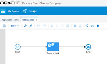 Create PCS application with message type as start and it can be synchronous service. Configure the service task in the application with the above create RESTful service. Here’s how it look alike: