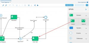 The process is displayed. Drag a human task type “Submit” into the process.