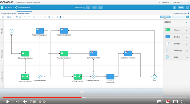In der Live Demo erfahren Sie wie man mit Hilfe von Oracle Process Cloud Service einen Schadenmeldeprozess in einfachen Schritten schnell digitalisieren kann. Wir gliedern die Digitalisierung des Prozesses in 5 Arbeitsschritte: Das Prozessdesign, der Entwurf der Webformulare, die Definition der Datenverknüpfungen, die Definition der Logik und den Test. Watch the video here.