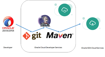 The process of deploying SOA Projects to Oracle SOA Cloud Services (SOACS) can be significantly simplified and streamlined using the Oracle Developer Cloud Services (DevCS) by facilitating the inbuilt Maven and GIT repositories. This article is a walk-through on how create a SOA Project in JDeveloper and get it deployed on SOACS using DevCS. It is based on Windows, but other operating systems work in a very similar way. The following graphic shows the simplified process.