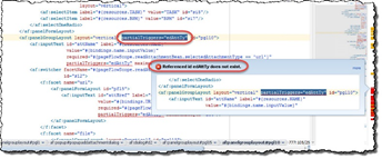 1. In JDeveloper, click the Source tab at the lower left corner of the form that has the error. Read the complete article here.