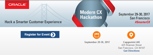 We invite you to join us for a two-day "Hack a Smarter Customer Experience" hackathon event on September 29-30, 2017 at the Capgemini Applied Innovation Exchange (AIE) in San Francisco. This technical challenge will consist of showcasing a unique use case which utilizes an Oracle Customer Experience SaaS technology and an innovative Oracle PaaS component like IoT, AI or Big Data.