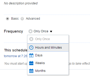 An integration can be scheduled using the ICS scheduling user interface (UI). The UI provides a basic and an advanced option. The basic option provides UI controls to schedule when to execute the integration. Read the complete article here