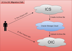 To do so, there is Clone utility which is provided for bulk export all the integrations, connections, packages, libraries and other artifacts from ICS to OIC. This clone utility is the set of REST APIs in ICS / OIC. ICS provides REST APIs to bulk export ICS artifacts and OIC provides REST APIs to import these exported artifacts.