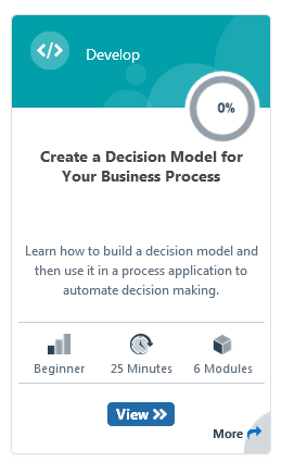 In this learning path, you’ll build a decision model that makes the decision for you. You’ll create a simple process application that asks you to input the current temperature and the chance of rain. Based on the forecast, the application decides whether you should bring: