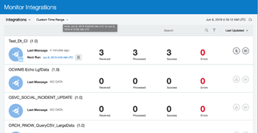 Custom time range filter is a new time based filter being added in the monitoring pages, which allows an user to filter runtime data for a user-defined time period. This filter will be available under feature flag oic.ics.console.monitoring.tracking.filter.custom-date-range.