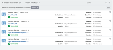 Suppose we have multiple instances of different Integrations and they have common values for primary and secondary business identifiers. This is how it will look like on the Tracking page: Read the complete article here.