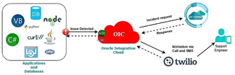 The OIC REST Service built to integrate ServiceNow and Twilio in same flow enables automated ServiceNow incident creation and notification to support engineer about the same incident via Voice call and SMS instantaneously. With this OIC service in place, the support teams can be engaged almost immediately for any issue. This integration can be an enabler in implementing a shift from on-desk support to on-call support for priority incidents. As the interface to this service is REST API based, it can be plugged into any application/database/scripting language that supports a REST call.
