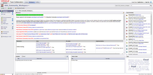 With 10426 users and 97,57 GB of data the SOA Community workspace (membership required) is our central source of information. Yes I crashed the workspace once! Oracle migrated the Beehive collaboration suite to a cloud based solution. With this change the community workspace will become obsolete. Please download any data like SOA Suite or BPM Suite or OIC hands-on training material asap! We are working on plans to launch a new website build in Oracle Content and Experience Cloud. What should be included? Let us know via twitter at #PaaSCommunity!