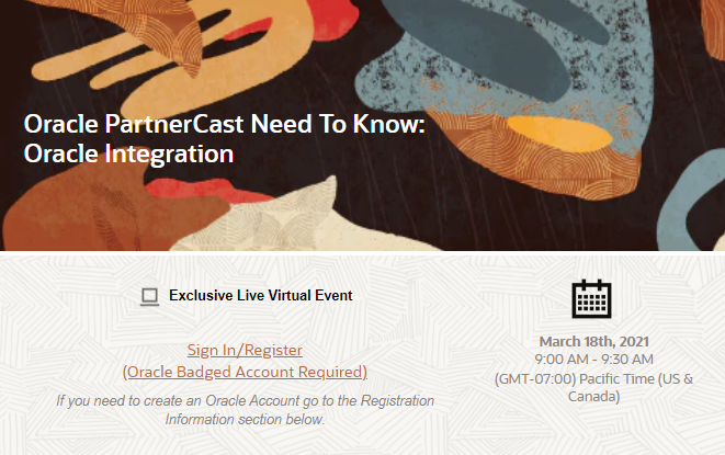 Experience Oracle’s innovative Integration portfolio from end to end – March 18th, 2021 9:00 AM – 9:30 AM Pacific Time