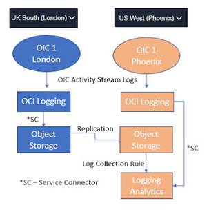 This post covers the scenario of aggregating the logs of OIC instances from different regions within the one tenancy. In my case, OIC1 is in UK South(London) and OIC2 is in US West(Phoenix). So how best to approach this?