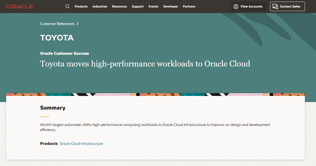 Cloud transition Toyota, the world’s largest automaker, runs high performance computing workloads on Oracle Cloud Infrastructure to improve car design and development efficiency.- AI breakthrough The startup Aleph Alpha is advancing a new generation of self-learning AI that can find hidden patterns in data, unsupervised. “It’s like a capable assistant—or an unlimited number of smart interns,” says CEO and founder Jonas Andrulis.