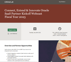 Connect, Extend & Innovate Oracle SaaS Partner Kickoff Webcast FY23 July 26th 2022
