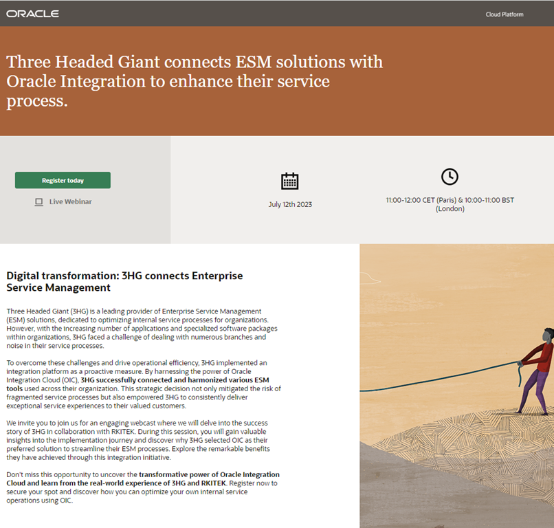 Three Headed Giant connects ESM solutions with Oracle Integration to enhance their service process – join an Oracle customer success webcast on July 12th 2023