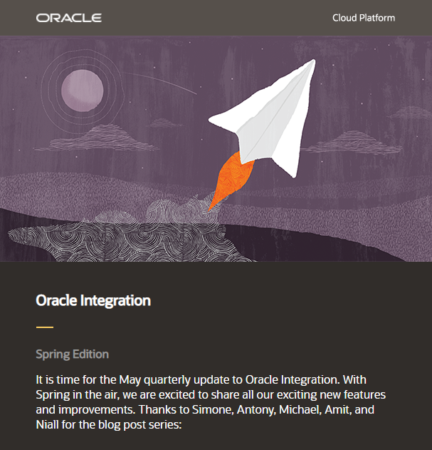 IOIC customer webcast HQ June 2021t is time for the May quarterly update to Oracle Integration. With Spring in the air, we are excited to share all our exciting new features and improvements. Thanks to Simone, Antony, Michael, Amit, and Niall for the blog post series: