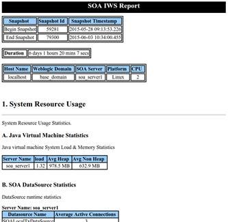 IWS works by taking periodic, configurable snapshots of server metrics. These metrics are stored to the database and are available for reporting. The reports are generated based on a start and end time and further filtering can be done by server, partition, and even specific composites. Oracle has provided an easy way to view this data with a generated HTML report and they also provide a CSV file, or XML file with the data requested.